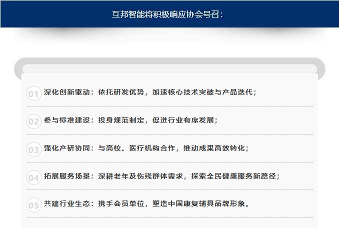 互邦智能將以此次大會為新起點,在協(xié)會新一屆領導班子引領下,切實履行會員責任,為破解行業(yè)發(fā)展難題、提升中國康復輔助器具產(chǎn)業(yè)競爭力貢獻力量。