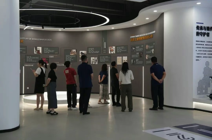 在賀君萍總經(jīng)理的陪同下,聯(lián)合調(diào)研團(tuán)隊(duì)一行重點(diǎn)參觀了互邦企業(yè)展廳。在承載著互邦35年發(fā)展印記的展廳內(nèi),調(diào)研團(tuán)隊(duì)深入了解了互邦從創(chuàng)立至今的發(fā)展歷程、重要里程碑以及在康復(fù)輔具領(lǐng)域取得的豐碩成果。賀君萍總經(jīng)理向各位領(lǐng)導(dǎo)專家介紹了互邦傳承與創(chuàng)新并重的品牌故事,以及涵蓋手動(dòng)輪椅、電動(dòng)輪椅、代步車等全系列、家族化的產(chǎn)品展示區(qū)。調(diào)研團(tuán)隊(duì)對(duì)互邦深厚的歷史積淀、持續(xù)的技術(shù)創(chuàng)新以及完善的產(chǎn)品體系表示贊賞,尤其對(duì)電動(dòng)輪椅在安全性與可靠性方面的持續(xù)投入表示高度關(guān)注。